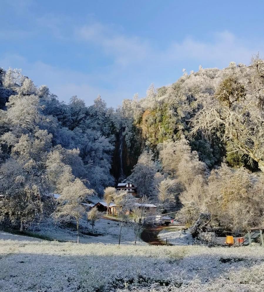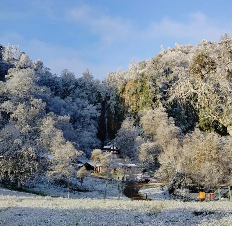 Cascada de Tehuitzila Hidalgo congelada por las bajas temperaturas
